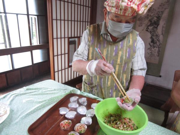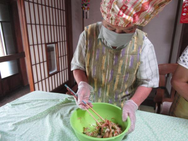 キャベツ、人参、きゅうり、コーンをいれてコールスロー作り