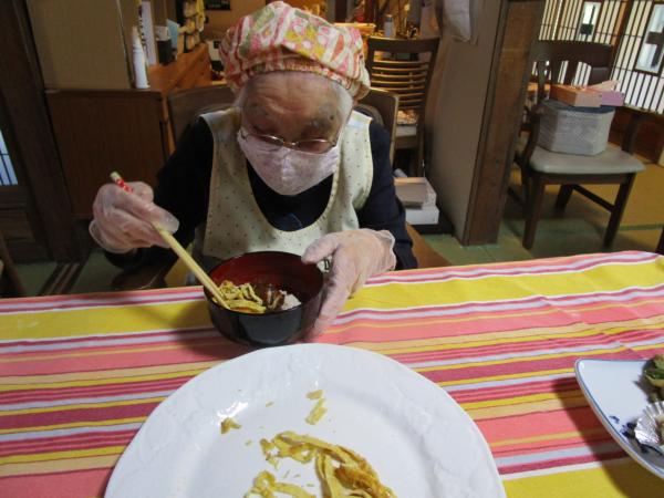 今回の昼食作りも利用者さまたちのご協力により美味しくできました