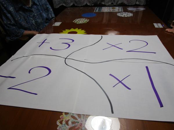 紙に足し算・掛け算・引き算が書かれてますね