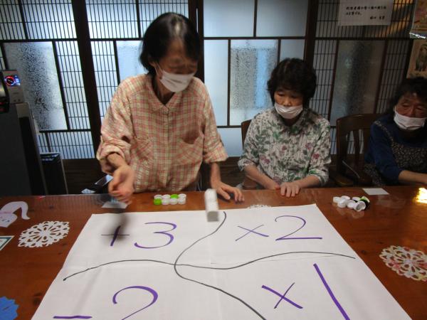 サイコロの出た数と紙に書かれている数字を計算していきます
