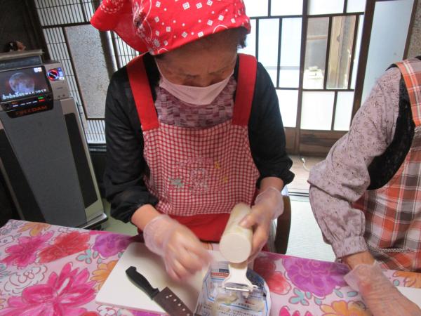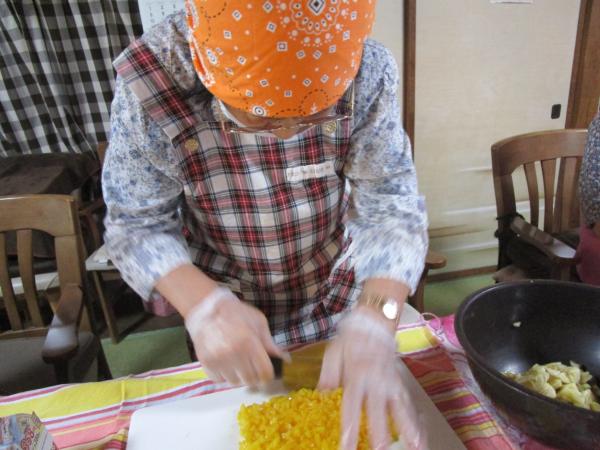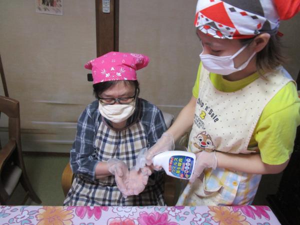エプロン・三角巾・マスク・手袋に、消毒バッチリ