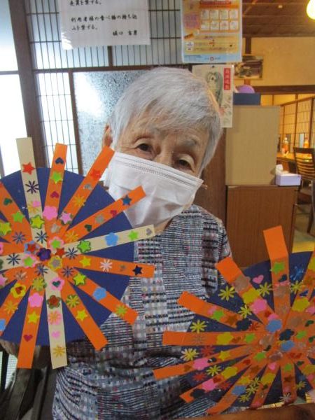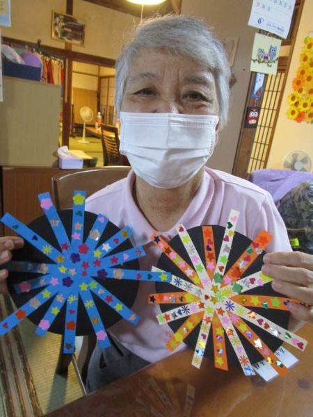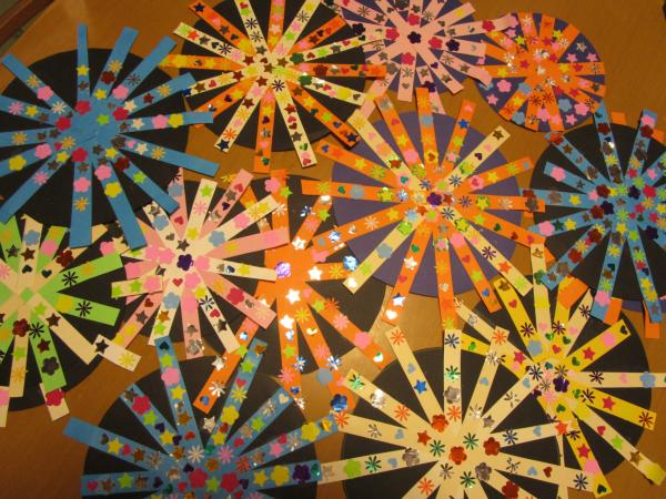 色画用紙と折り紙を使って、こんなにキレイな花火を