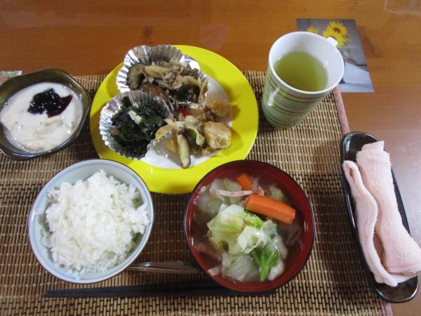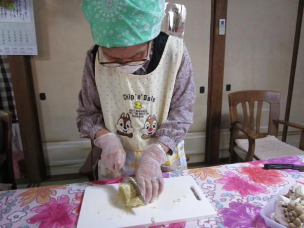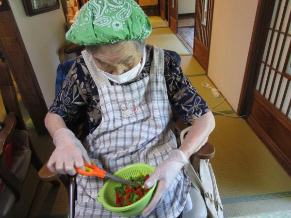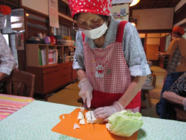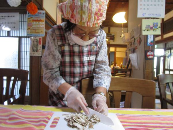 スープ・チキンの照り焼きに使用する食材を切って下さる母たちです(^^♪