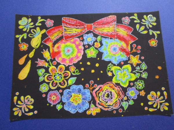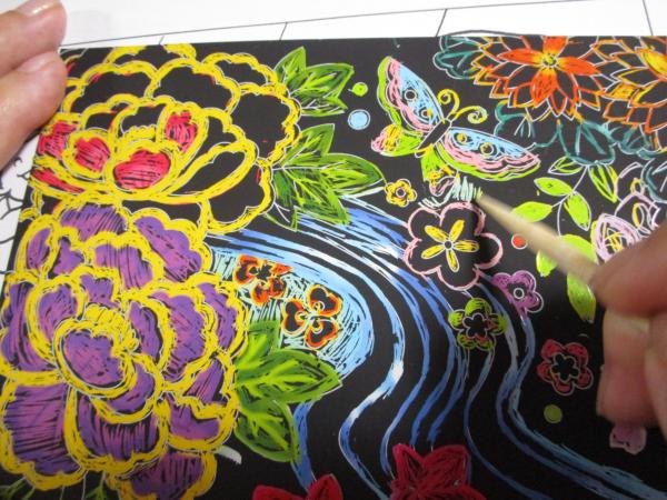 利用者様のすてきなスクラッチアートの作品をご覧になりながら・・・