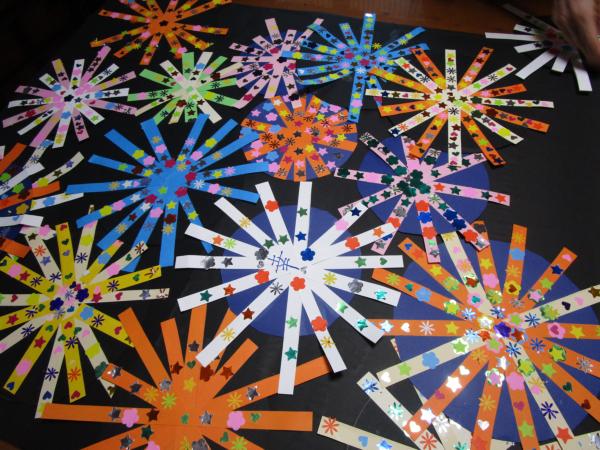 夜空に、出来上がった花火のパーツを打ち上げましょーーー