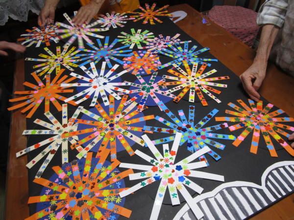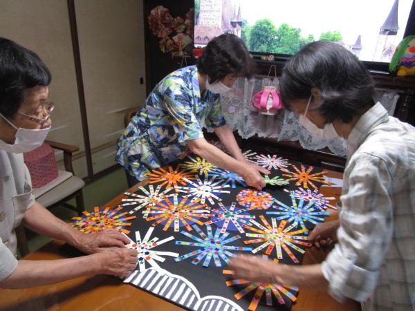 皆さん大好きな、花火の壁画を作成中で~す
