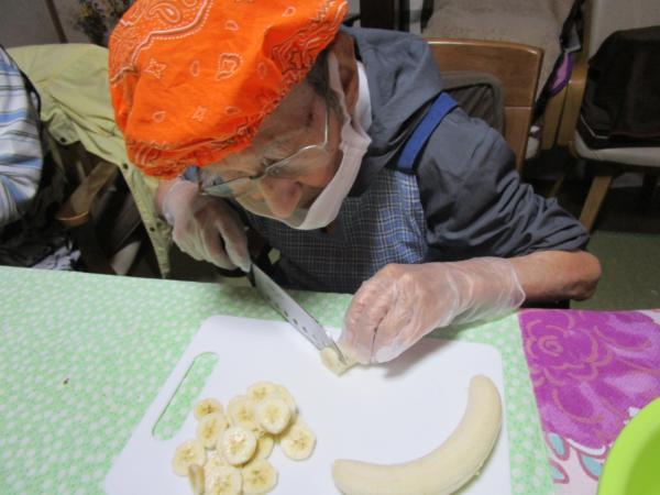 バナナ🍌を丁寧にに切ってくださいます(^^♪