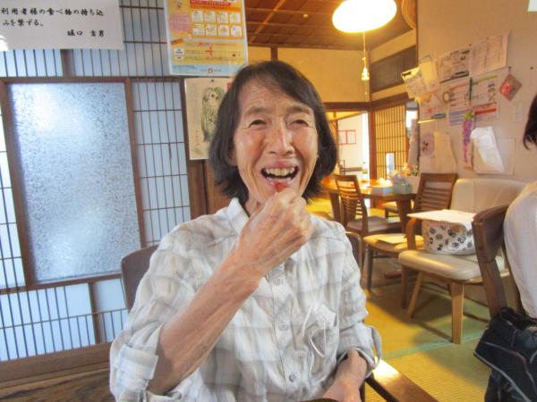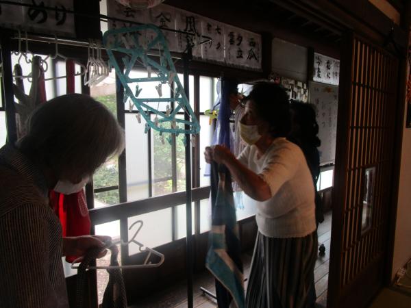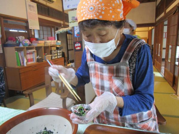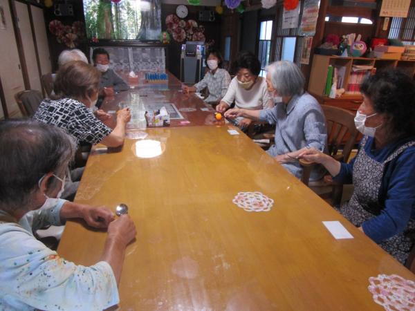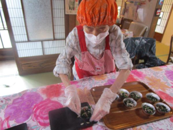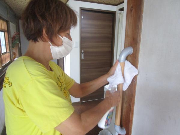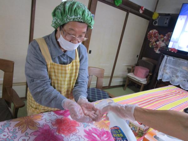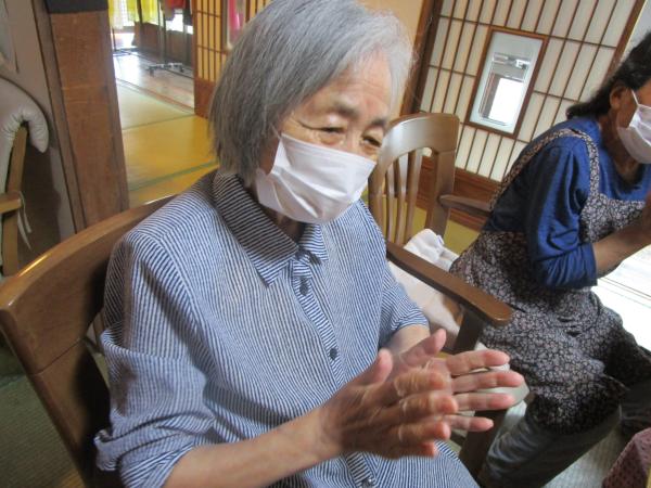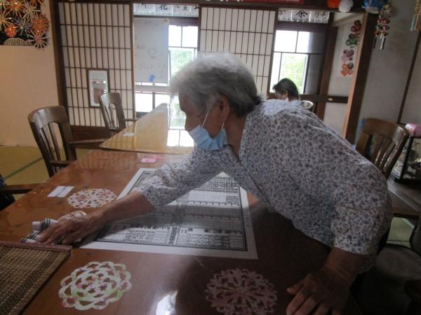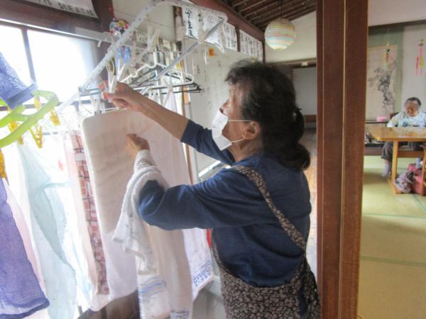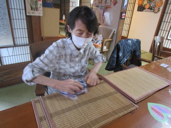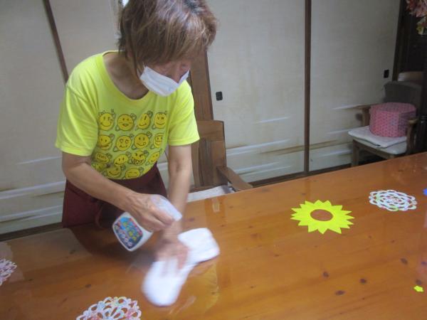ランチョンマット拭きとお手伝いをしてくださる利用者さまたち