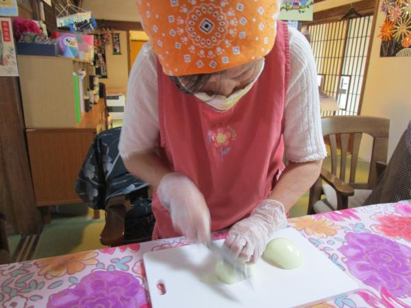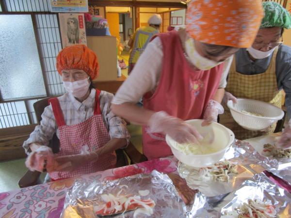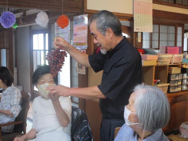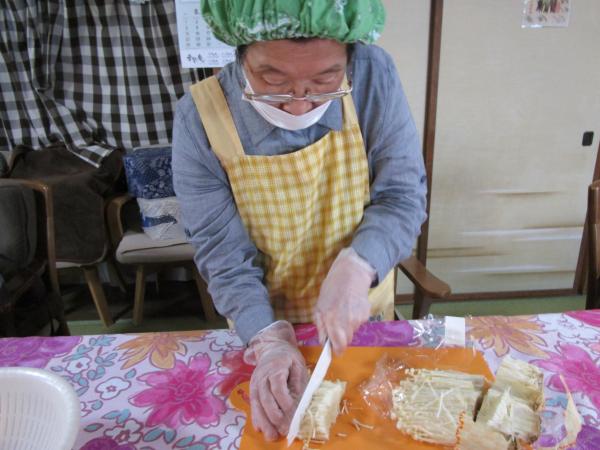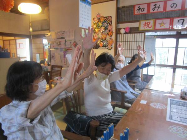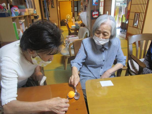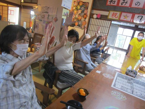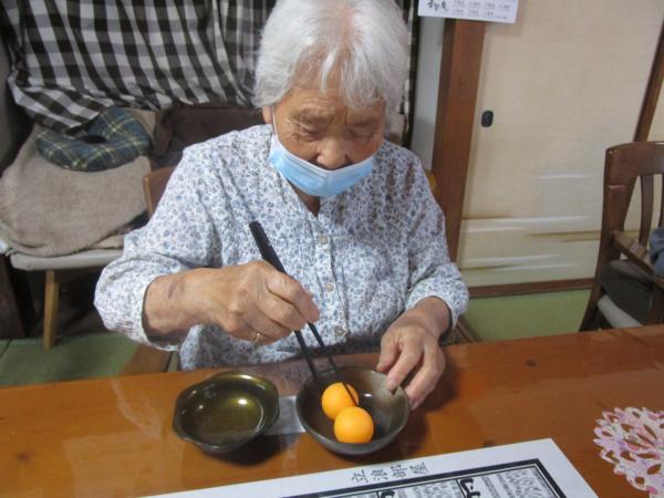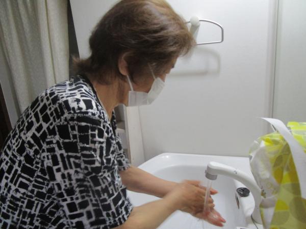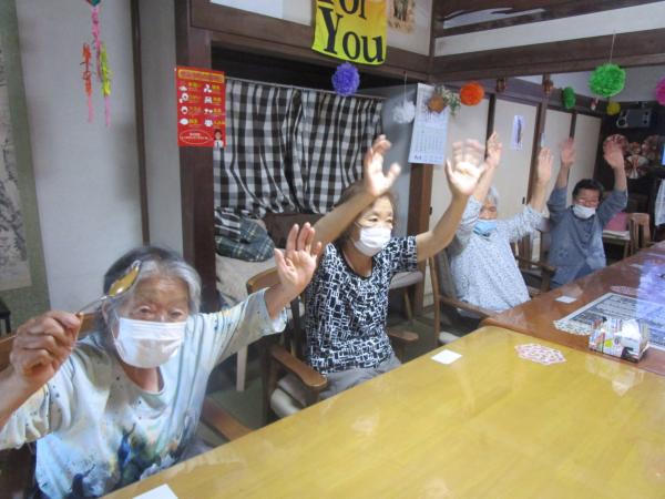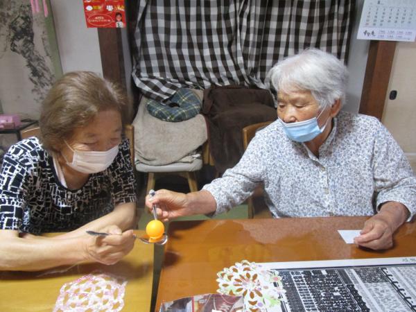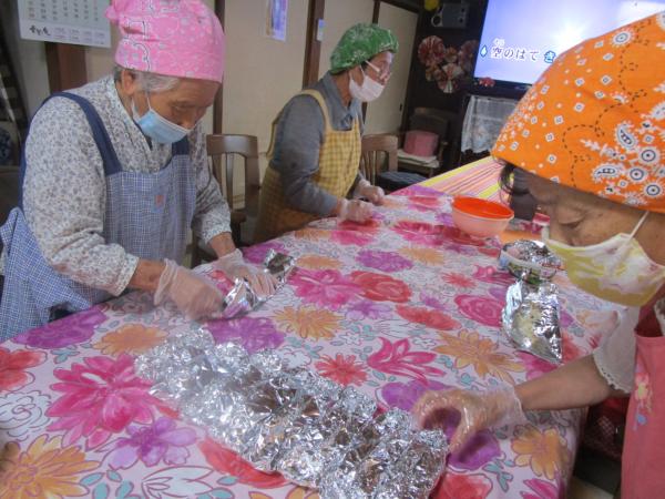 ランチョンマット拭きとお手伝いをしてくださる利用者さまたち