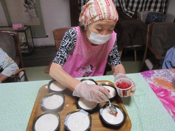 豆乳バナナヨーグルトにいちごジャムをトッピングして彩りよくきれいに🍓