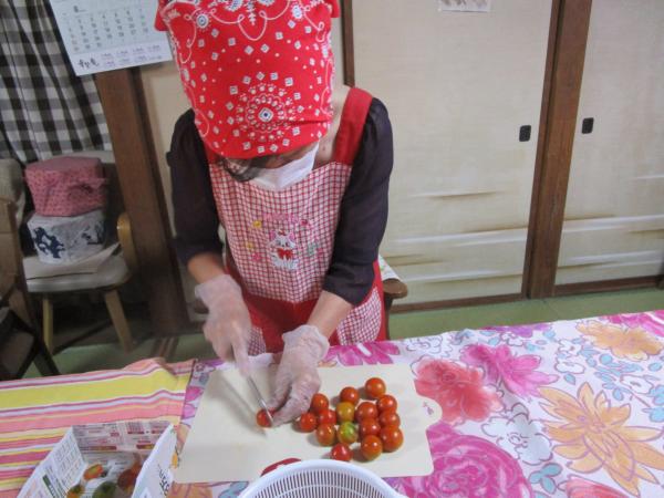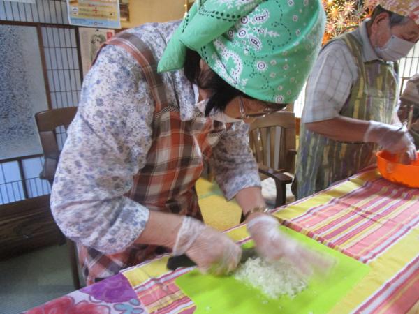 キュウリ👆などの旬の野菜をメニューに合った形に切って下さる母たち