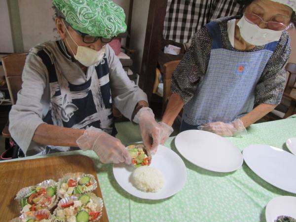 和みファミリーの連係プレーで盛り付けも完ぺき