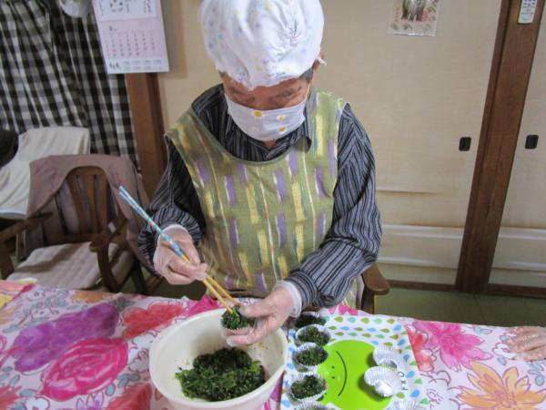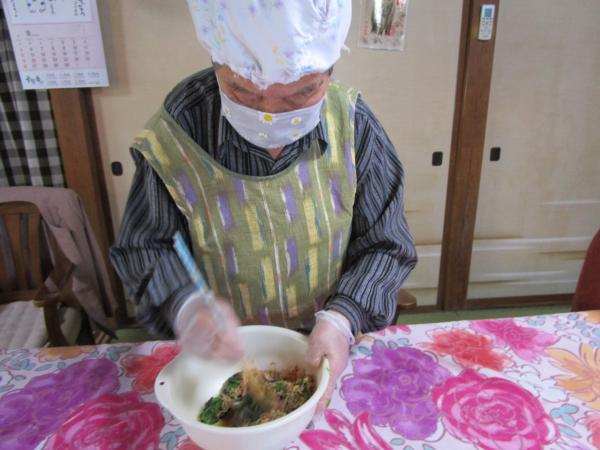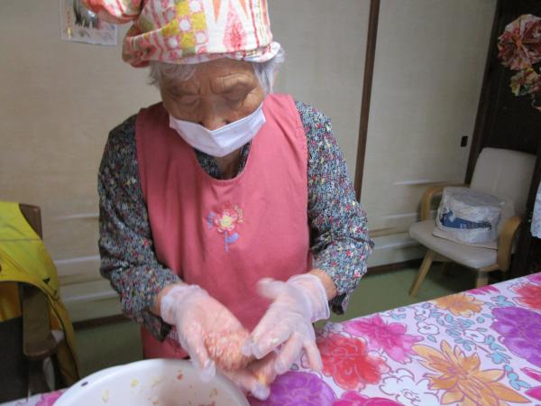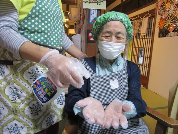 エプロン・三角巾に着替えてマスク・グローブをつけて