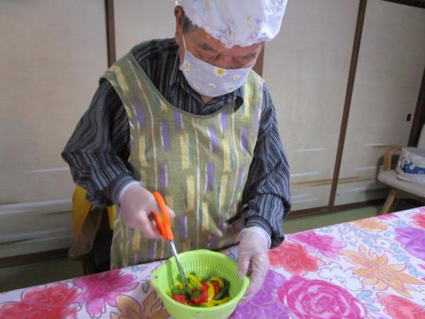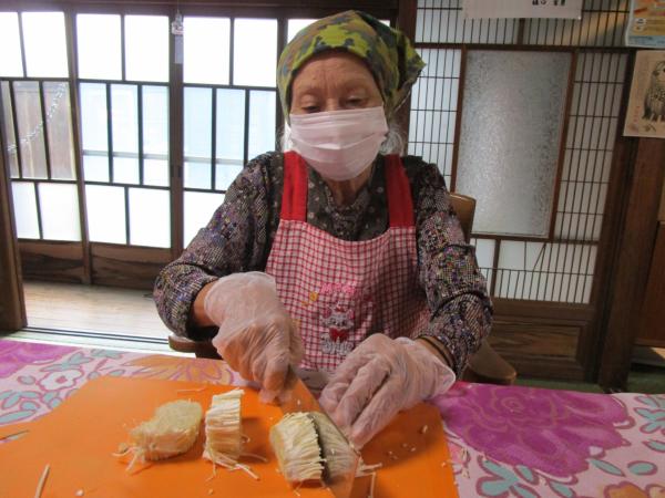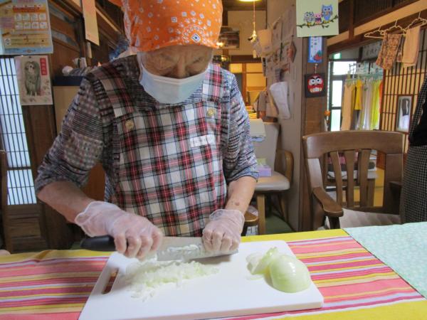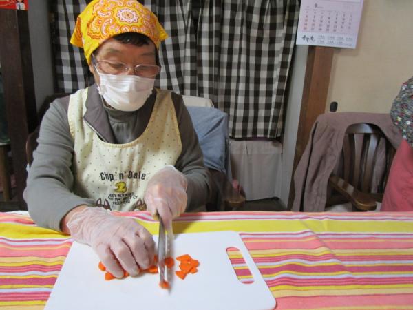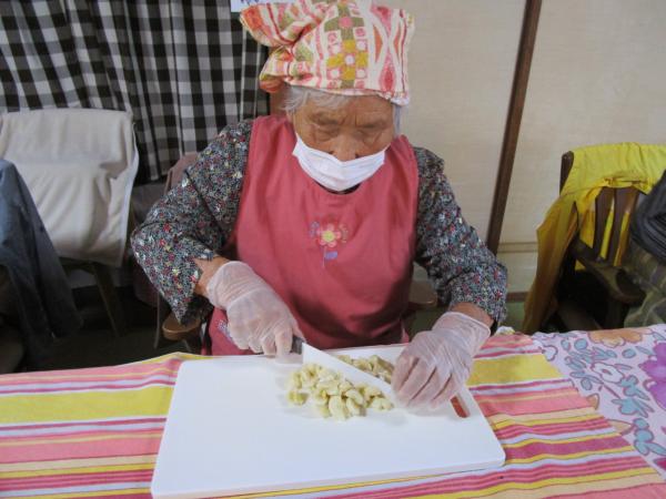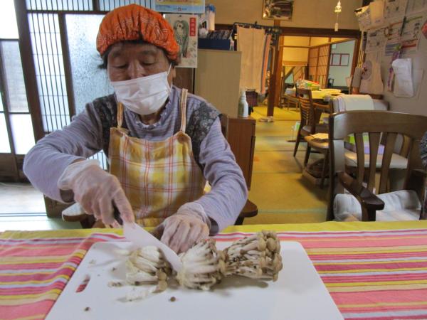 早速レシピに合わせて野菜やキノコを色んな形に切って下さる母たち