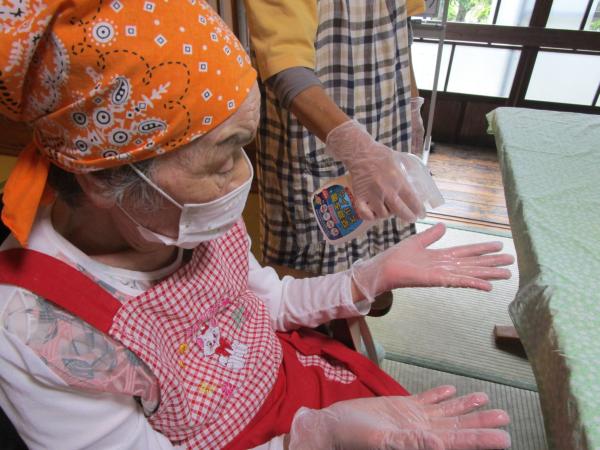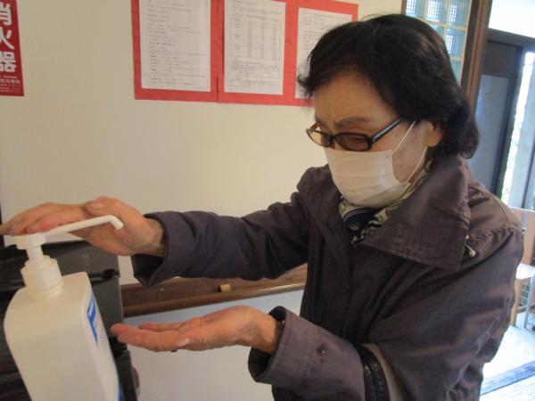 コロナ感染予防として玄関で手指消毒してから入って頂きます