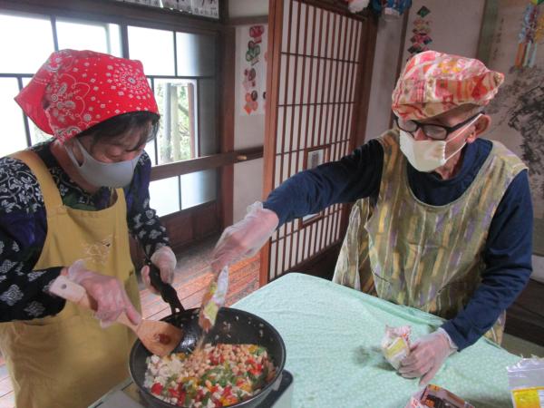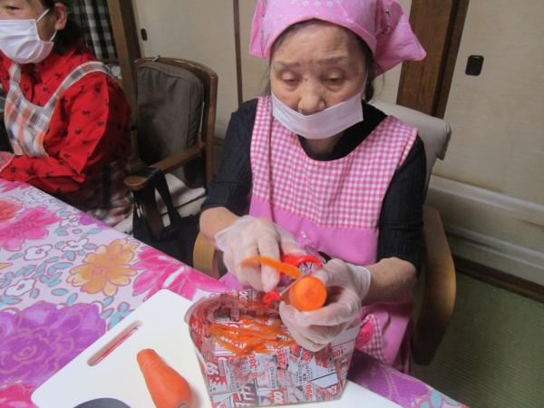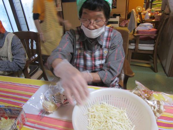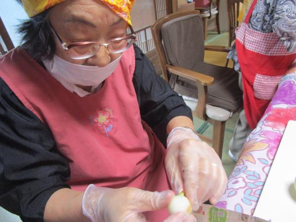 雨の朝になりましたが、今日も元気に調理レクリエーションを