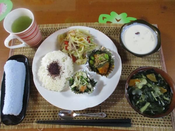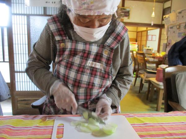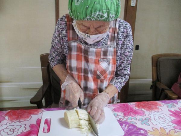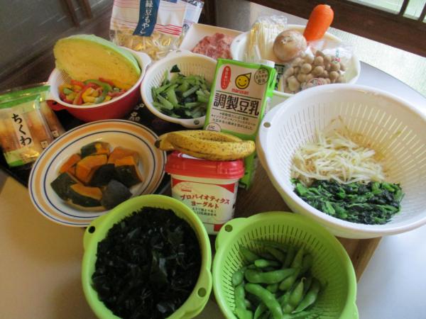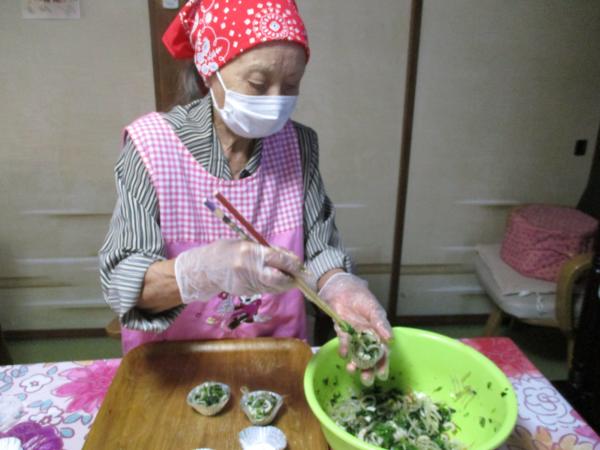 ほうれん草、もやし、ちくわを混ぜてナムルづくりに