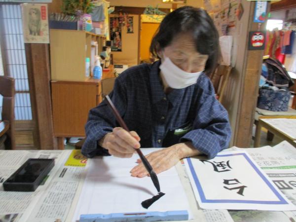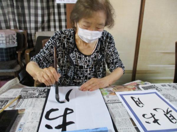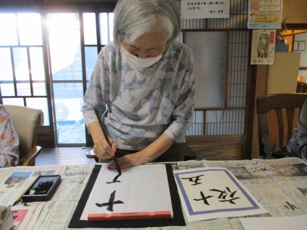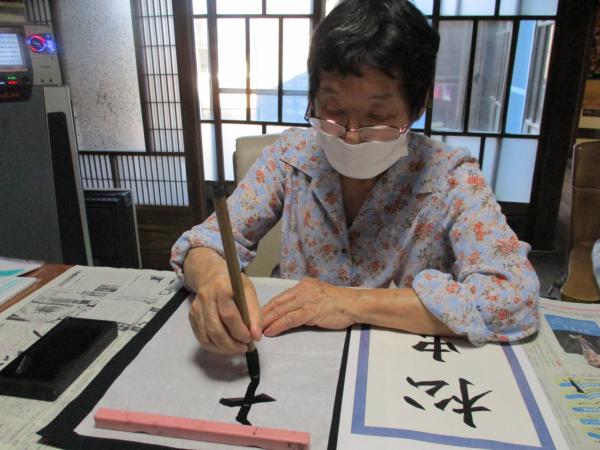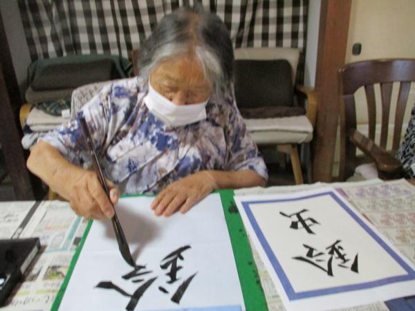 久々の習字に緊張されていた母も筆を持って書き始めると