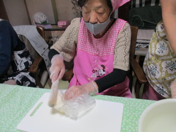 長芋を袋に入れて 綿棒でたたいてトロロ芋にします