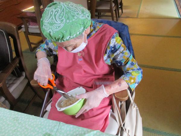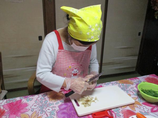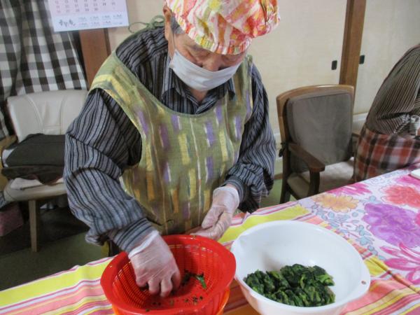 茹でたほうれん草を水気をしぼって ほうれん草のしらす和え担当