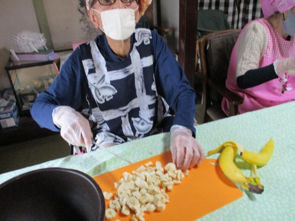 バナナ🍌を丁寧に切って