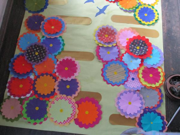 お昼休みに 菊の花の壁面飾り作りに取組まれこんなに華やかになりました💮