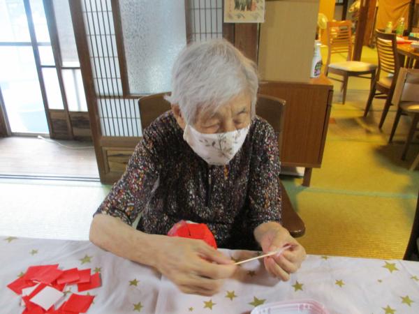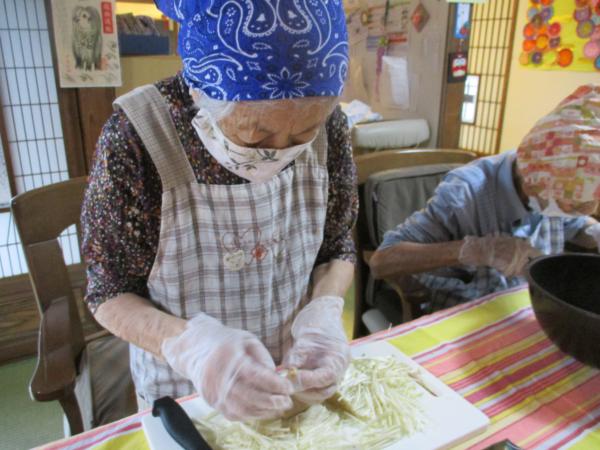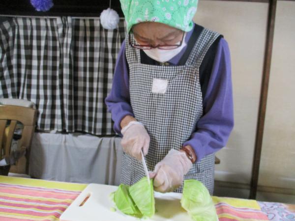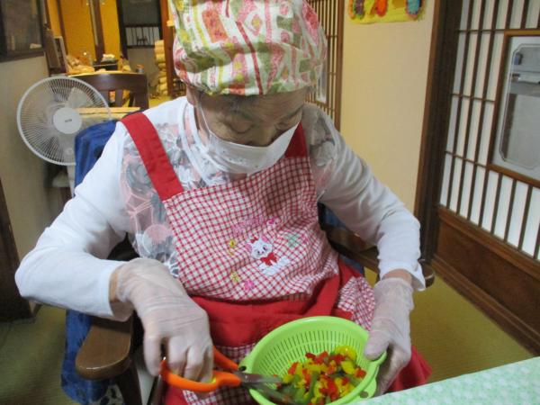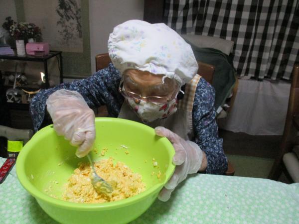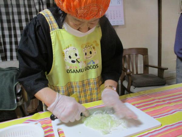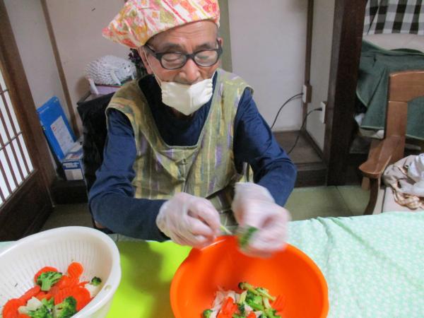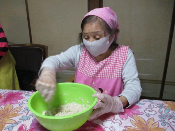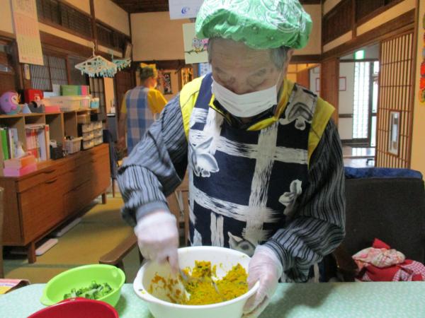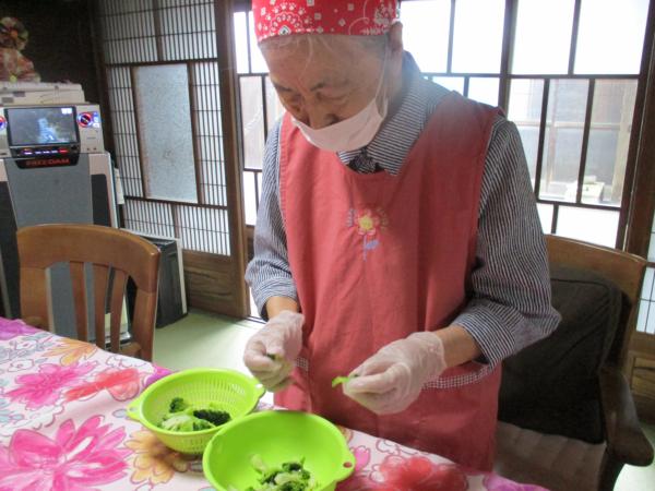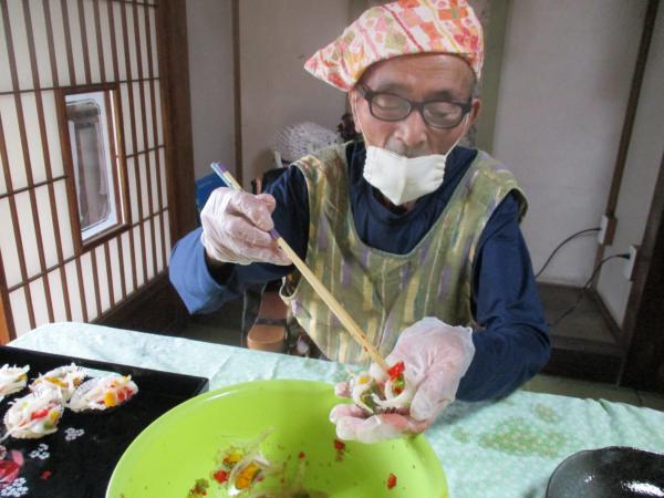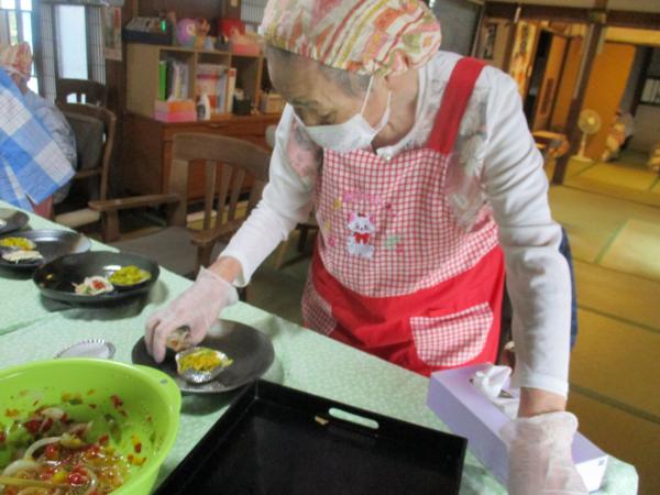 仕上げの盛り付けも和みの父母たちの連係プレーで