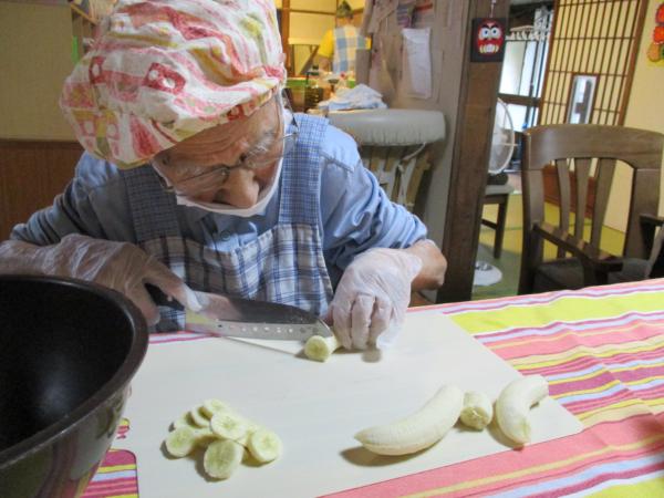 豆乳バナナヨーグルト作りはこちらの父たちにお任せ