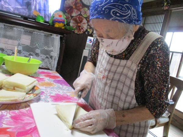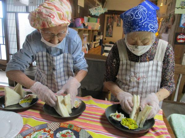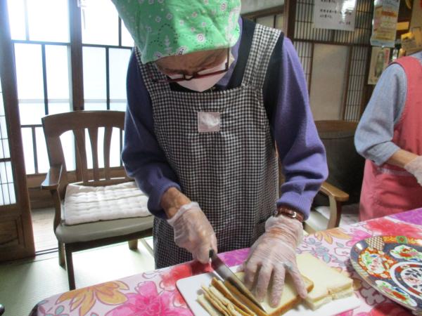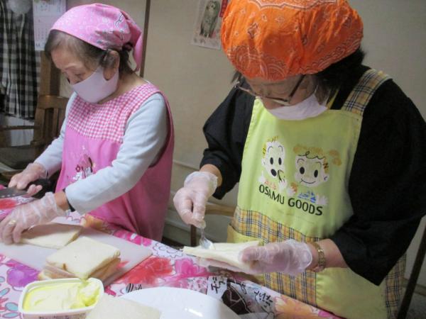 マーガリンを塗ったりと皆さんで協力してサンドウィッチ作りです🥪