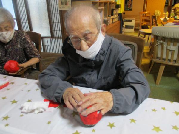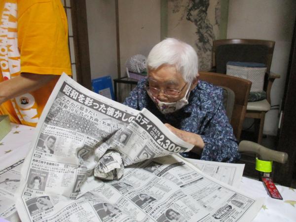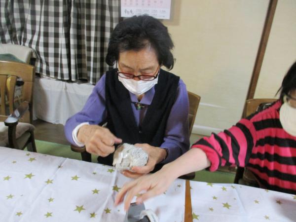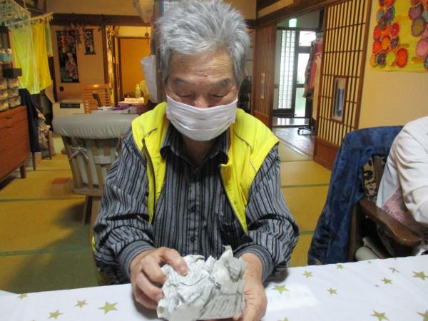 新聞紙をぐちゃぐちゃに丸めていますよ