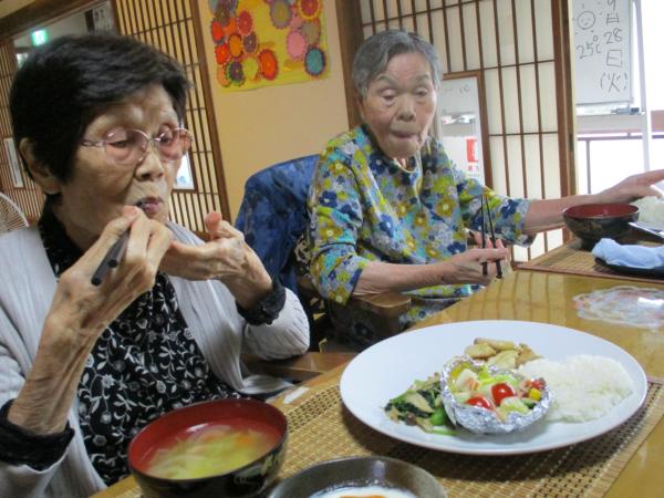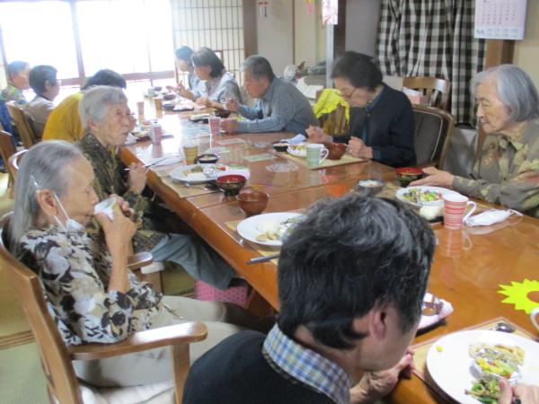 皆さんで作った出来立てご飯を皆さん一緒に食べると