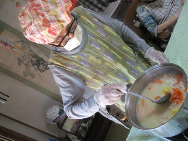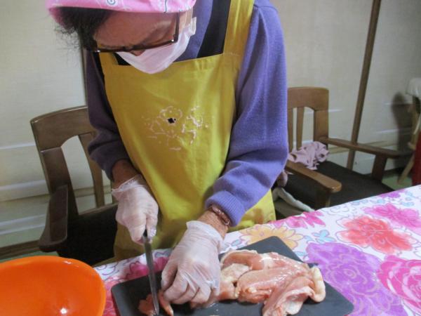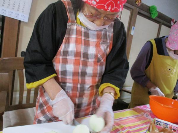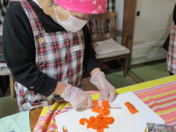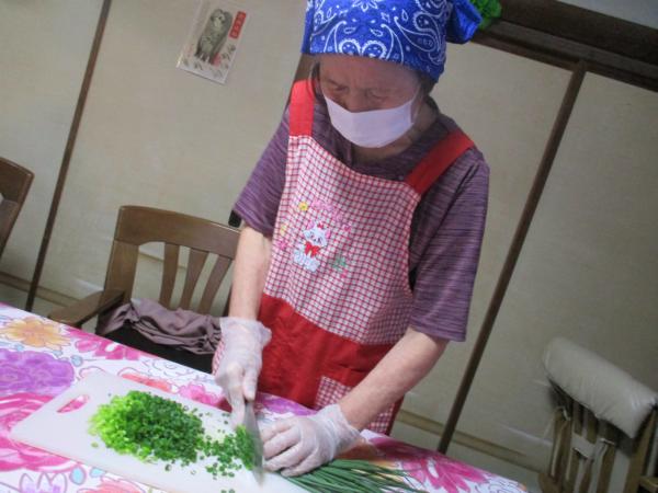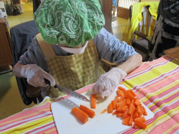 レクリエーションに参加し、安全に包丁や火を使ってお食事作りを