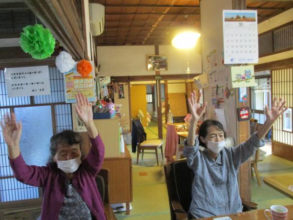 歌謡体操ではテレビ画面を見ながら歌を歌いながら