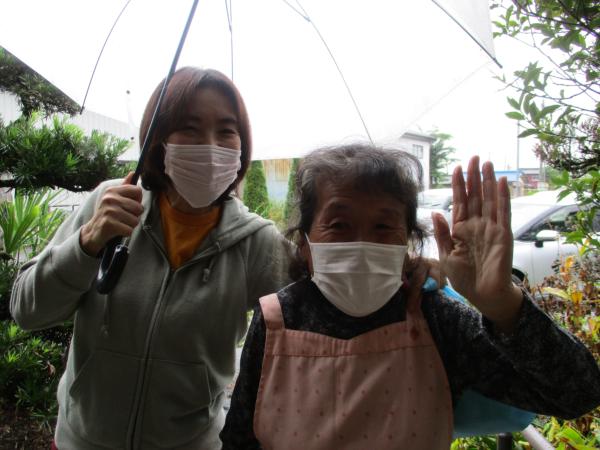 和みの母たちは雨の中でも元気いっぱいにご来庵で~すうれしい顔手 (パー)