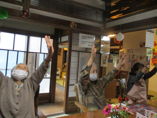 バンザイ三唱で冷えた身体を温めましょうほっとした顔