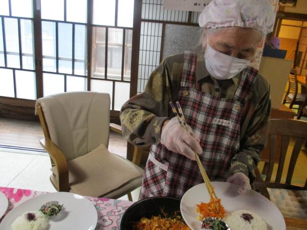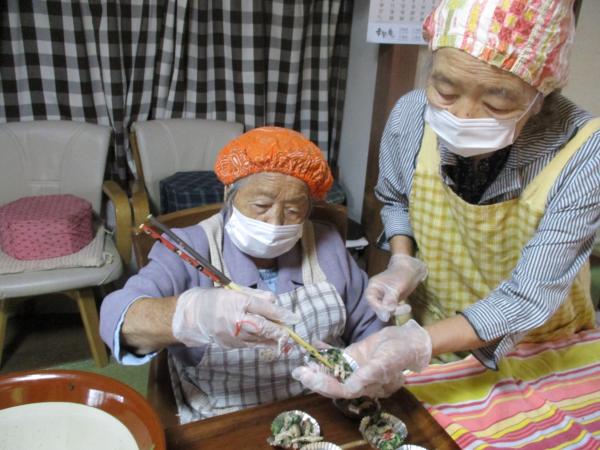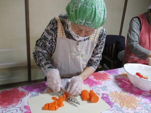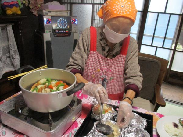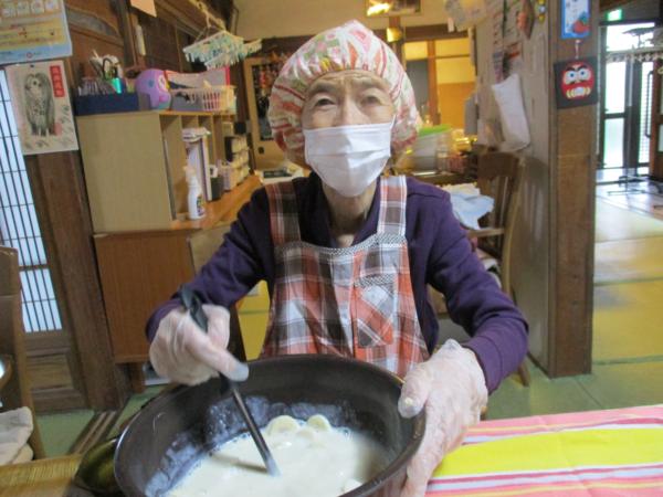 煮物づくりもこちらの母たちにお任せあっかんべー