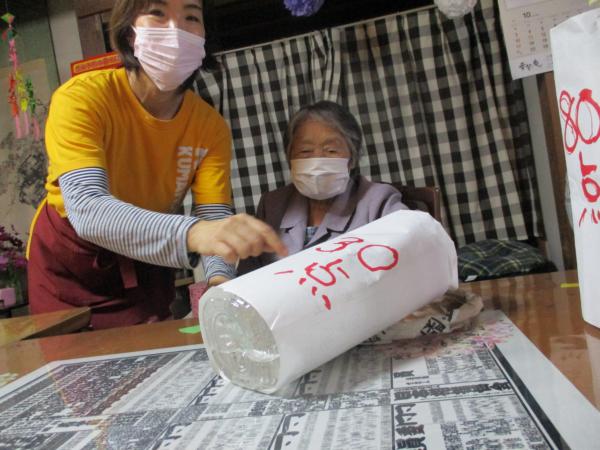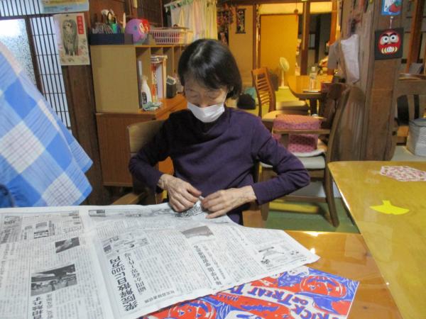 新聞紙で何を作っているでしょうかウッシッシ (顔)exclamation and question