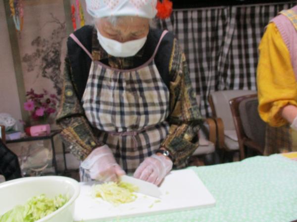 キャベツサラダに使用する 茹でキャベツを切ってくださいます