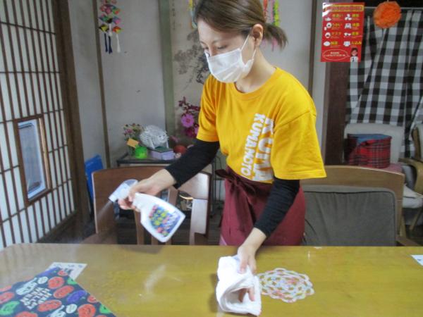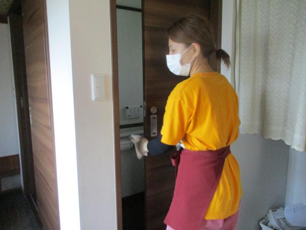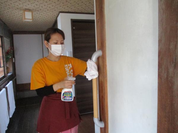 トイレの引き戸など 手の触れる箇所はアルコール消毒を行っています