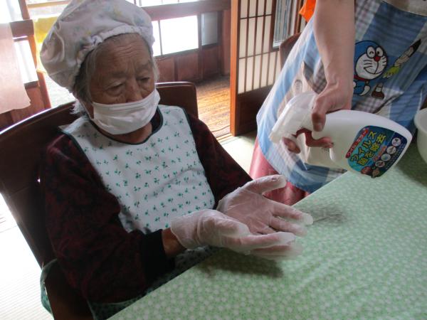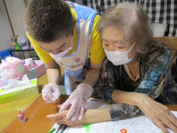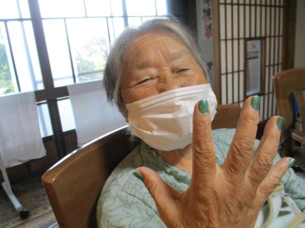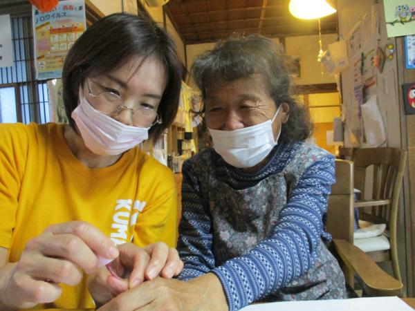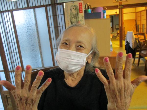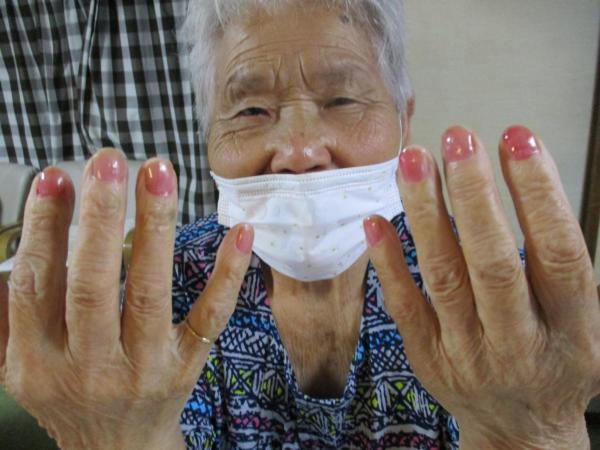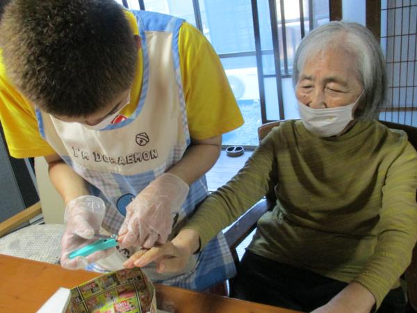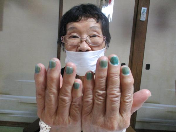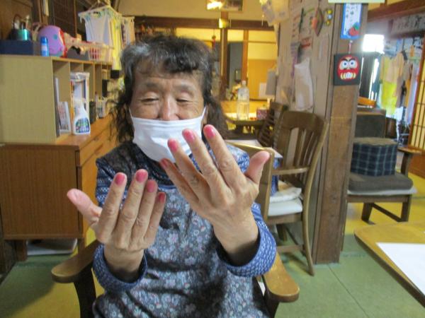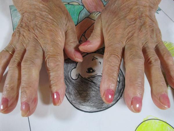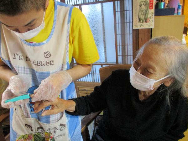 スタッフが、手指と爪のチエックをしながら、爪を切って