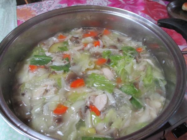 チキンと、キノコ、たっぷりのお野菜を煮込みま~す