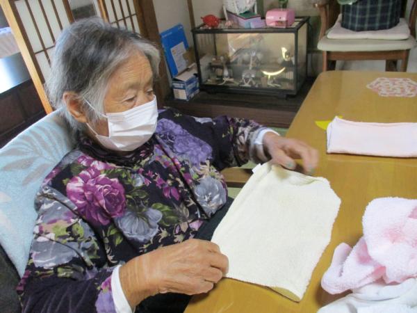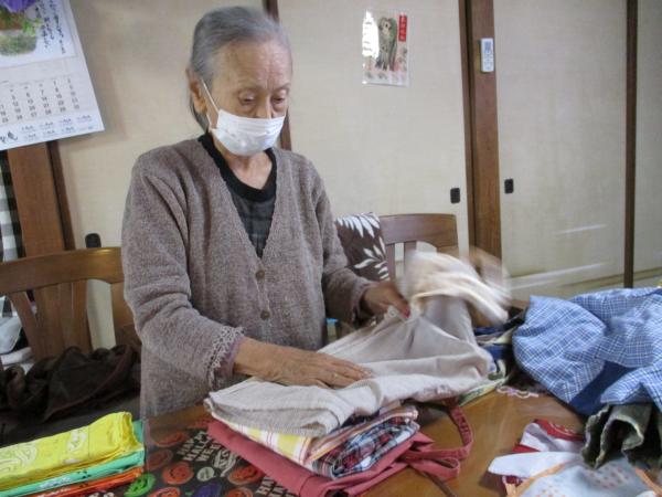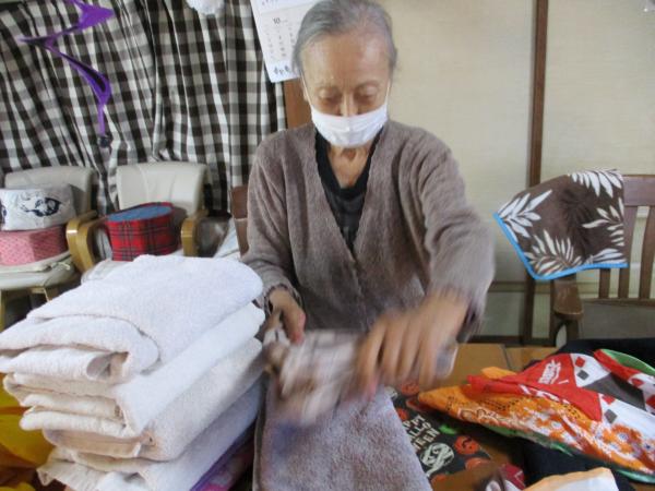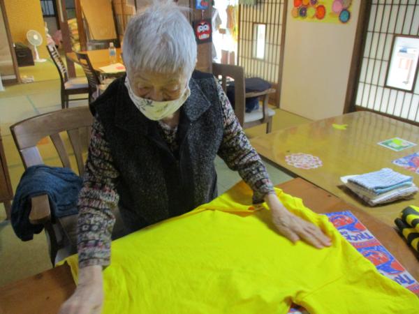 乾いた洗濯物をたたんでいただいています