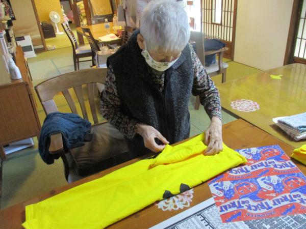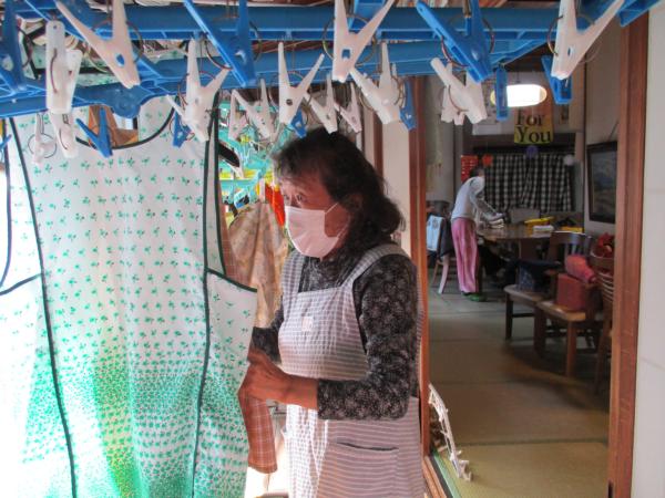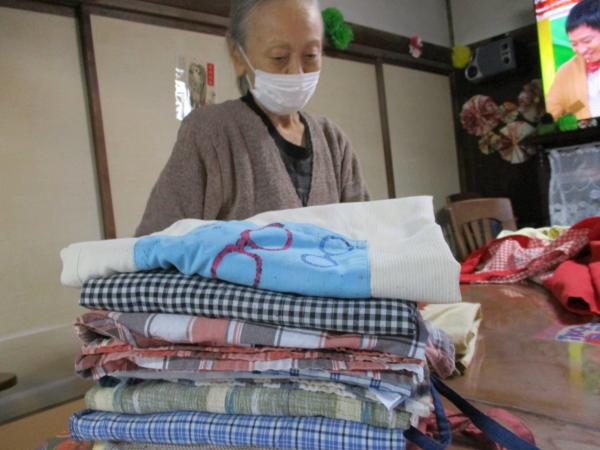 たたんだエプロンが積みあがっていきます
