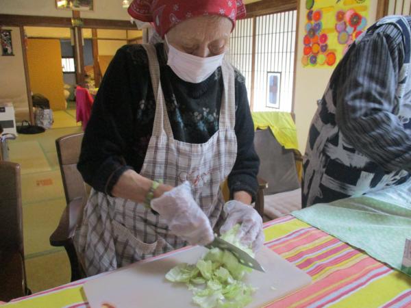 利用者さま同士で それぞれ分担・協力して 毎回和みランチを作っています