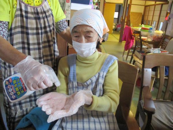 三角巾・エプロン・もちろんマスクも そしてグローブをつけてから