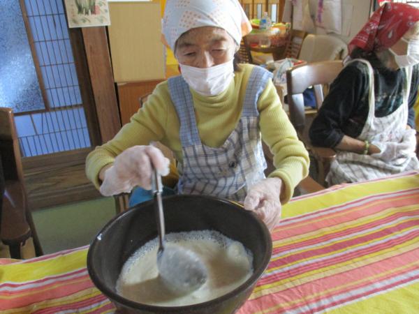 豆乳ヨーグルトが出来ました 盛り付けは母にバトンタッチ