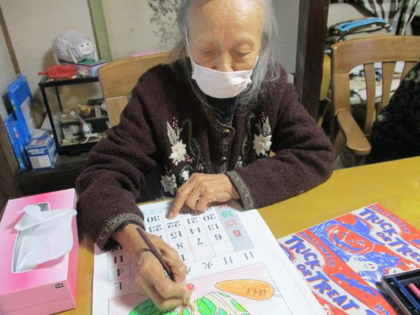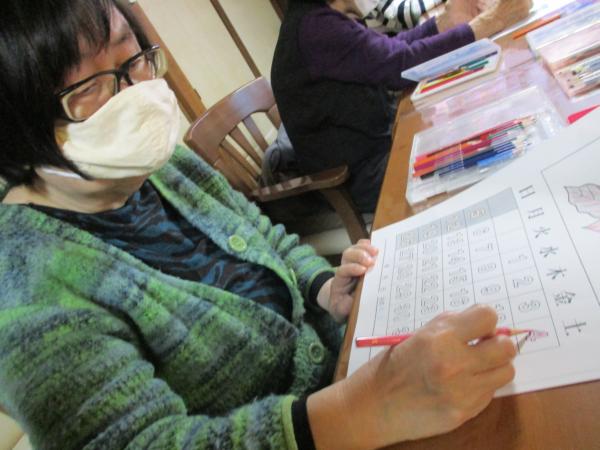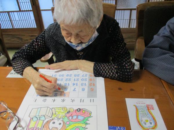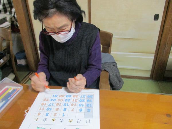 おしゃべりしながら カレンダー塗りを楽しんでいました