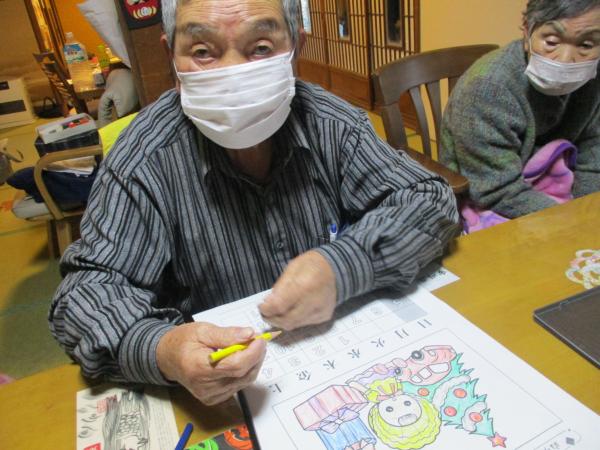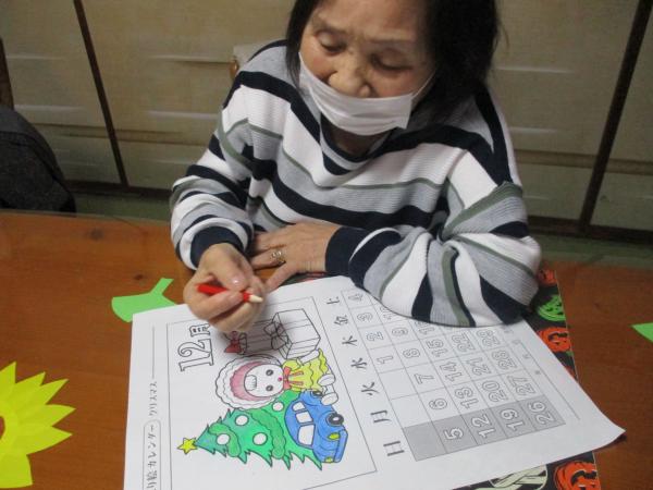 合間には 12月のかレンファ―塗り絵にも取り組んでいます