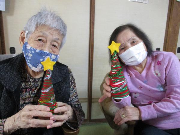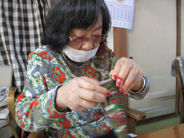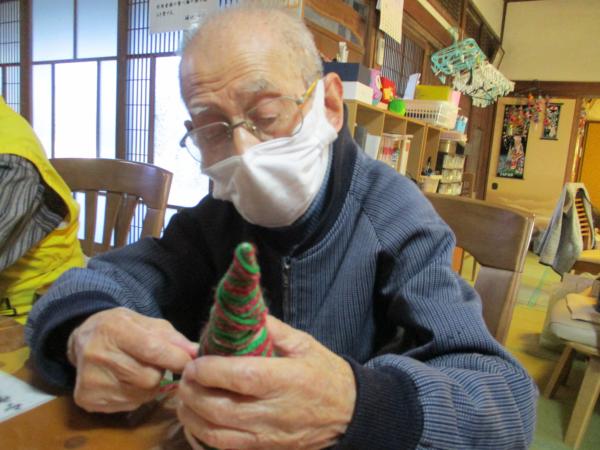 手工芸のレクは引き続きミニクリスマスツリー🎄です