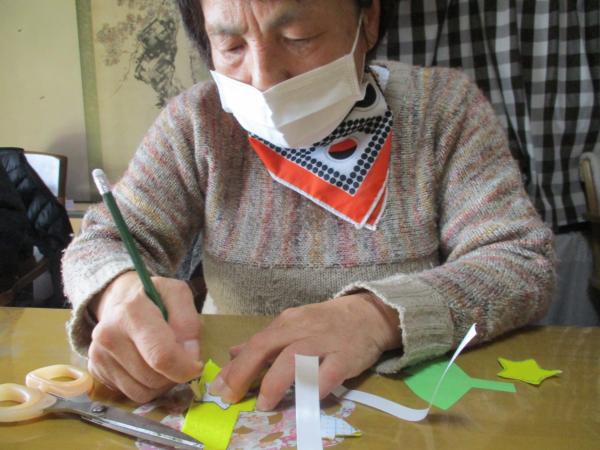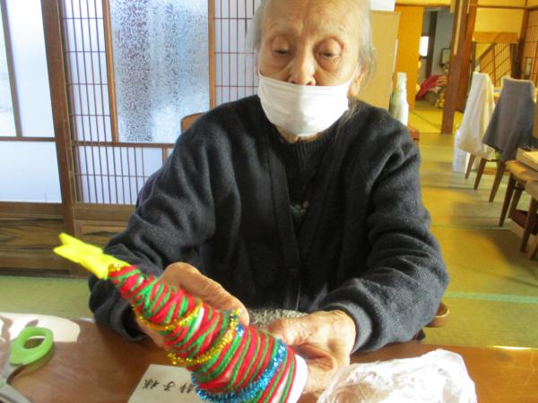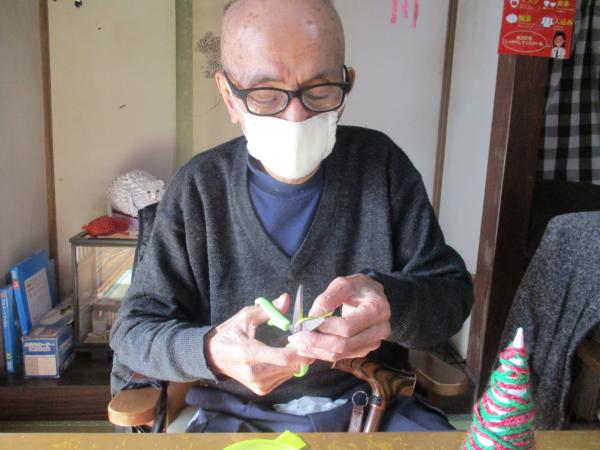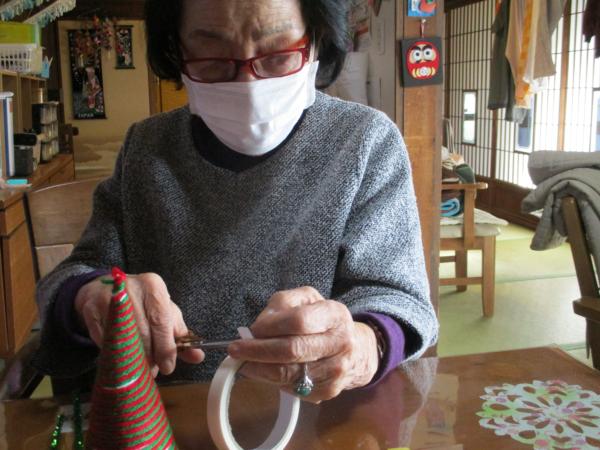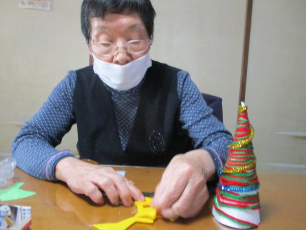 午前中は手工芸にてクリスマスツリー作りを行いました。